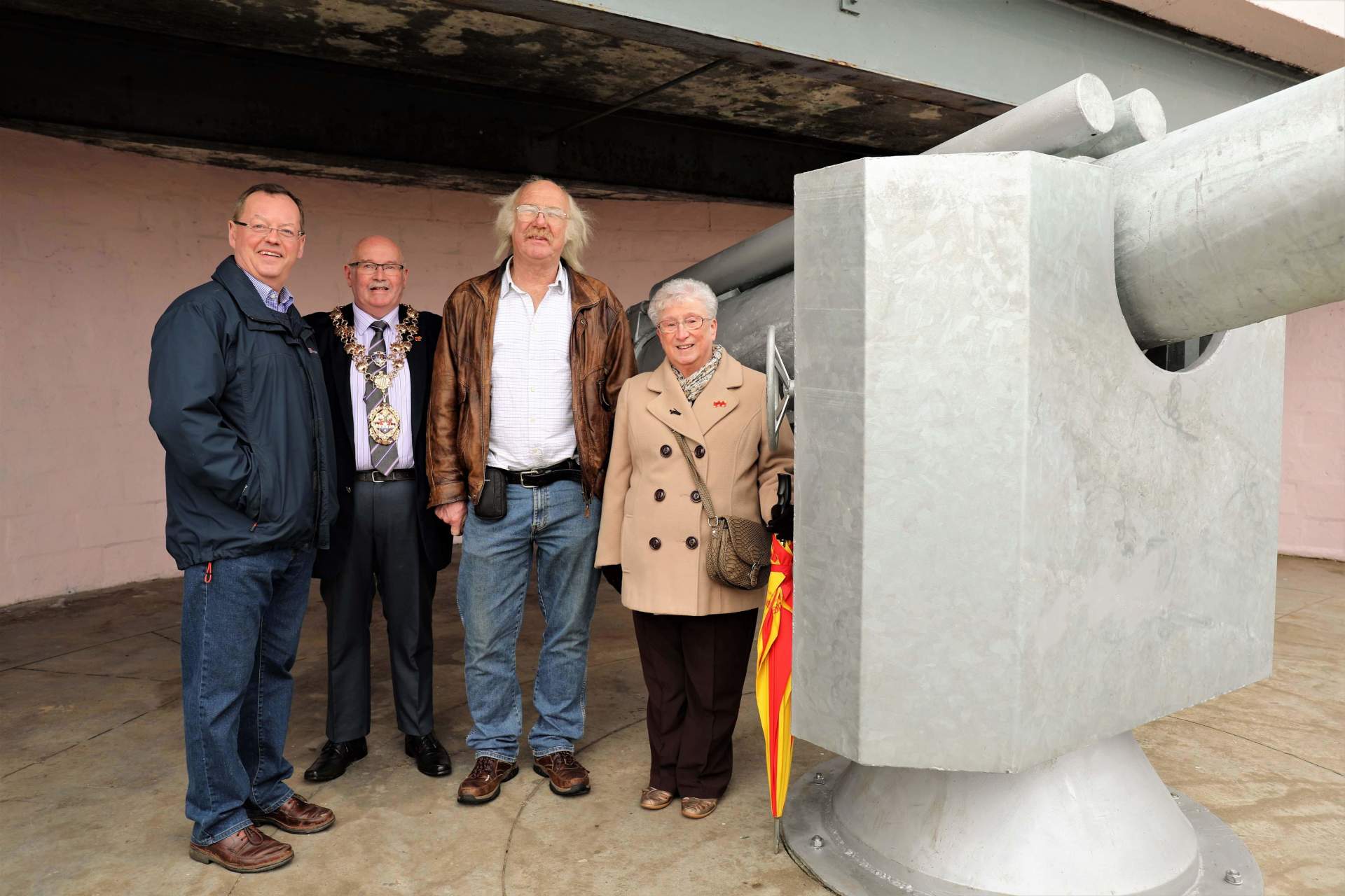 The unveiing of the Blyth Battery Guns took place 6th April 2019. Col Benjamin Speke Depty Lord lieutenant of Northumberland did the honors. Also present was Peter Jackson leader of Northumberland County Council, Major of Blyth Adrian Cartie and his wife Eileen, Kath Nesbitt County Councillor. Mr M Fairington who built them.